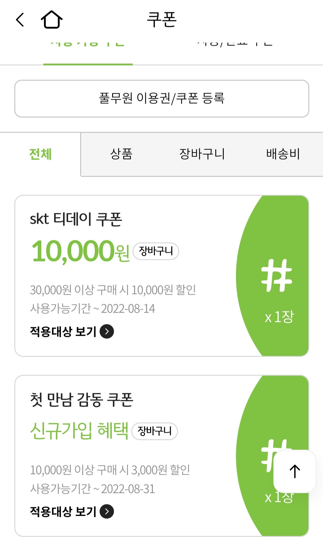 티멤버십 앱에서 일단 풀무원몰 쿠폰 다운받으신 후에 풀무원몰에 쿠폰번호 등록해주시면 됩니다.