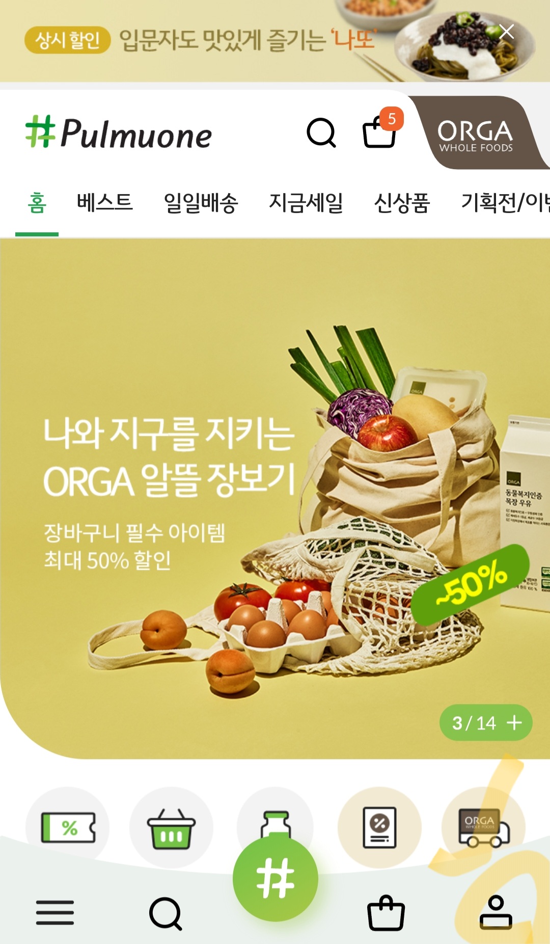 첫째 주라 다양한 브랜드들이 이벤트 진행중인데요. 저는 아이들 먹을거리 사려고 풀무원몰을 선택했습니다. 😊