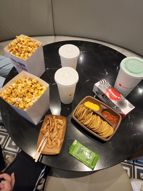 아침 안먹고 가서 영화보면서 또 잔뜩 먹었네요.😅 마지막 이야기인 '노량'은 11월에 개봉한다는데 벌써 기대됩니다.