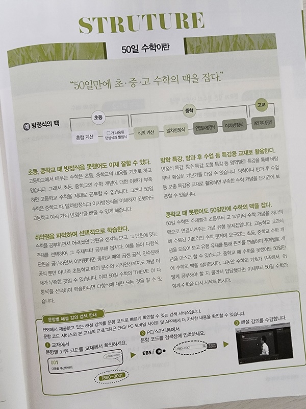 50일 수학은 초, 중, 고1과정 중에 중요한 개념을