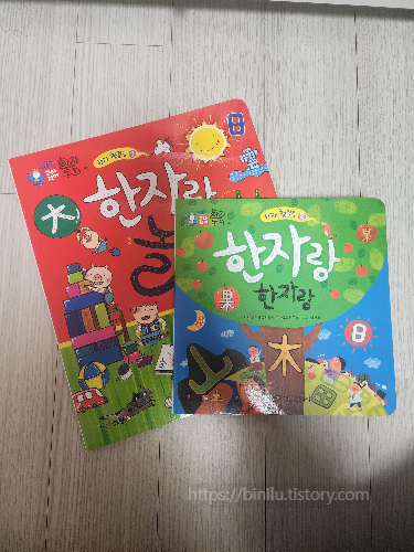 한자카드와 보드북형태의 놀이북이 들어있어요.