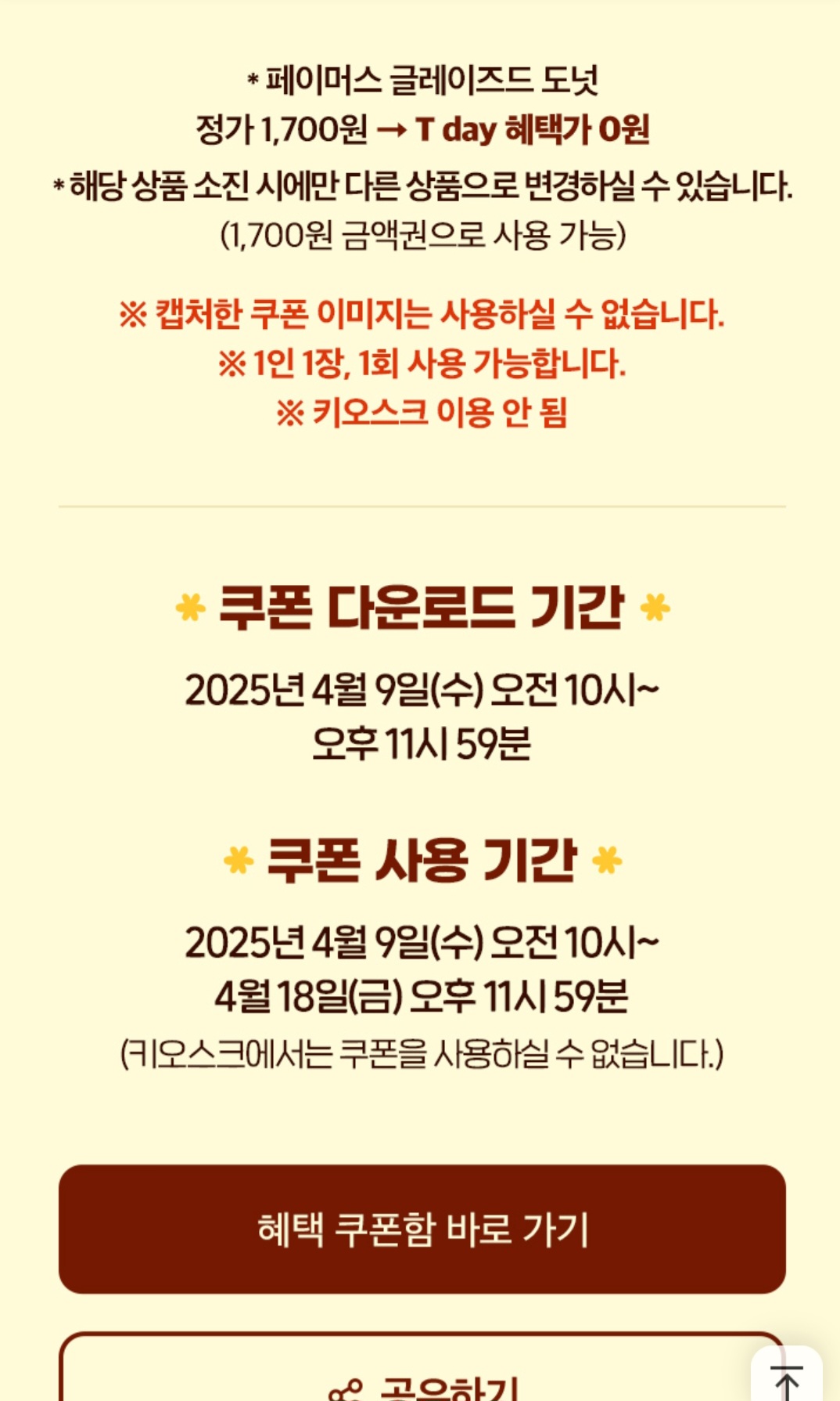 | [4월 T-day] 티데이 Day2 혜택!! 👍 (0) | 2025.04.15 |
