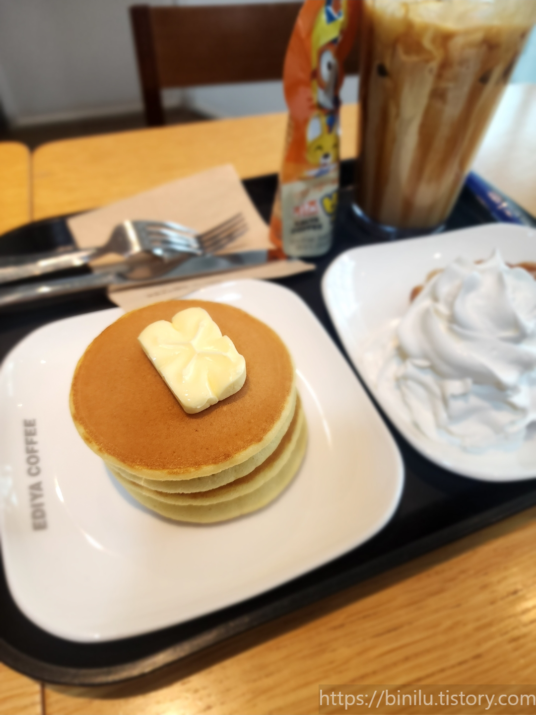 버터팬케이크랑 생크림 와플도 추가했어요.ㅋㅋ
