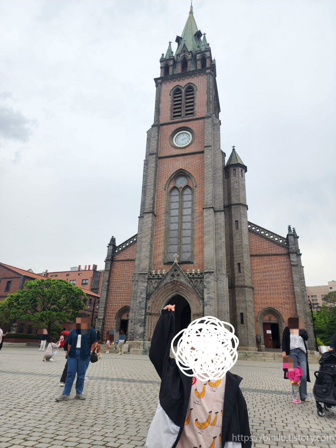 처음 보는 커다란 성당 건물을 보고 좋아하네요.^^