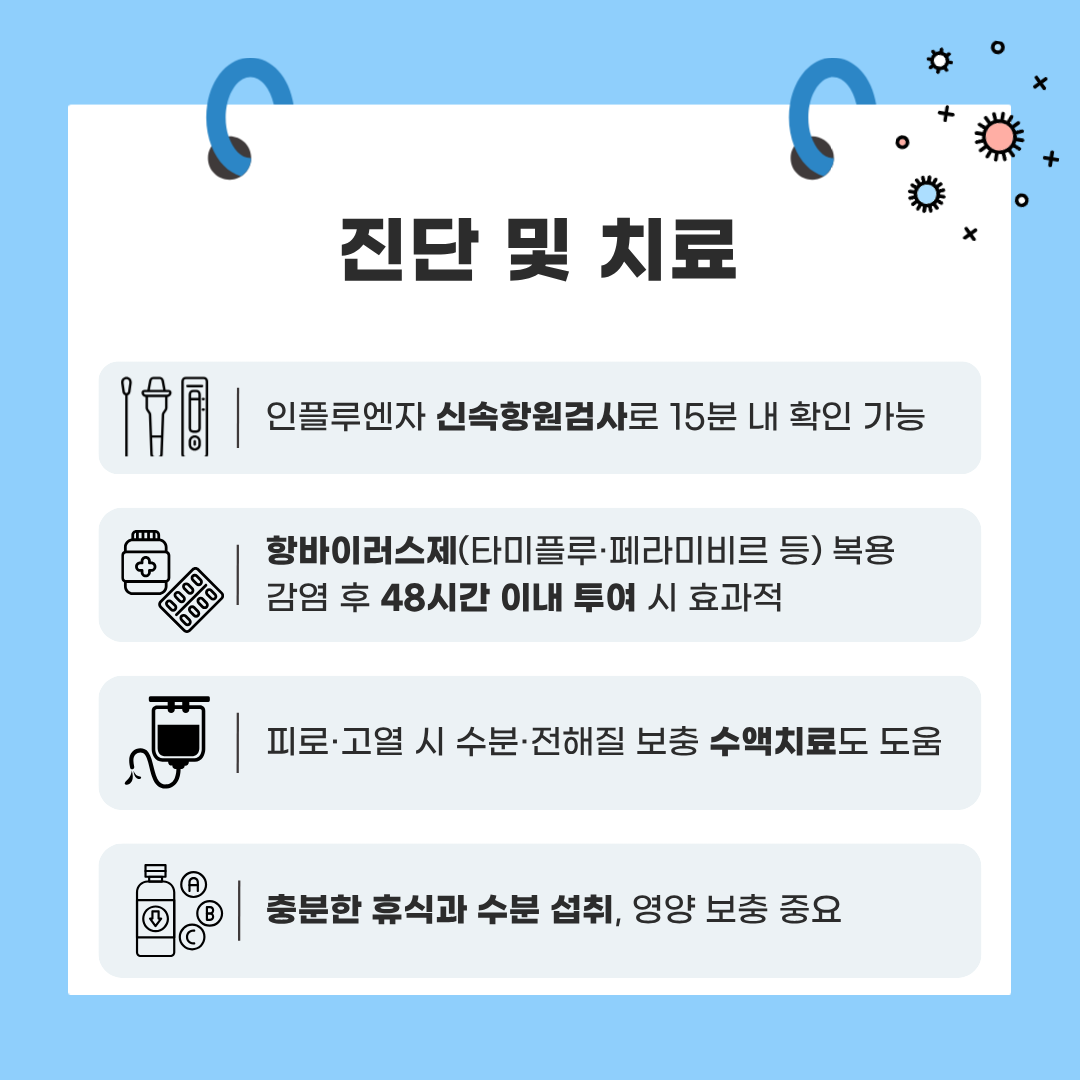 📌 항바이러스제는 증상 발생 후 48시간 이내에 복용해야 효과가 가장 큽니다.