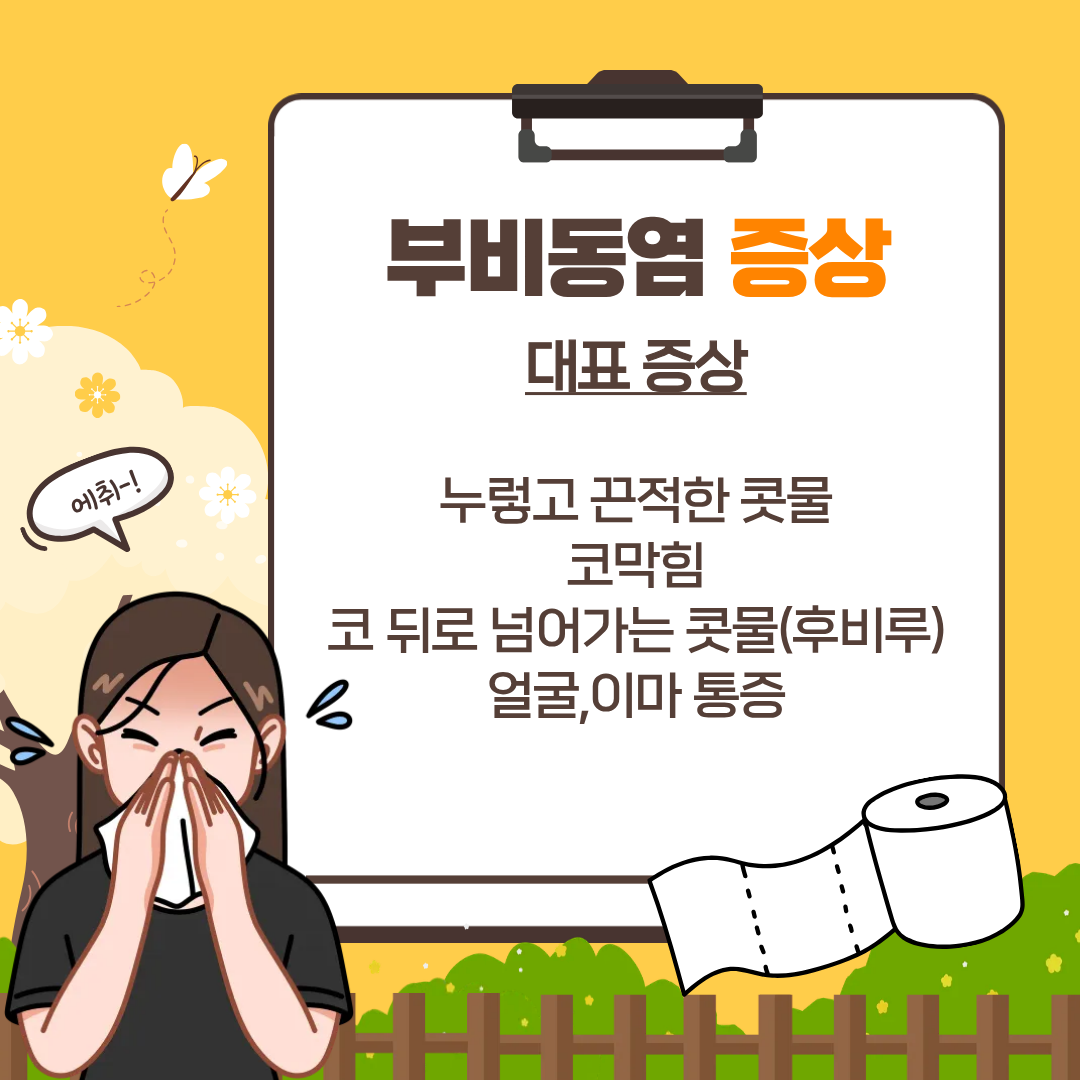 ✔ 증상: 누런 콧물, 코막힘, 얼굴 통증