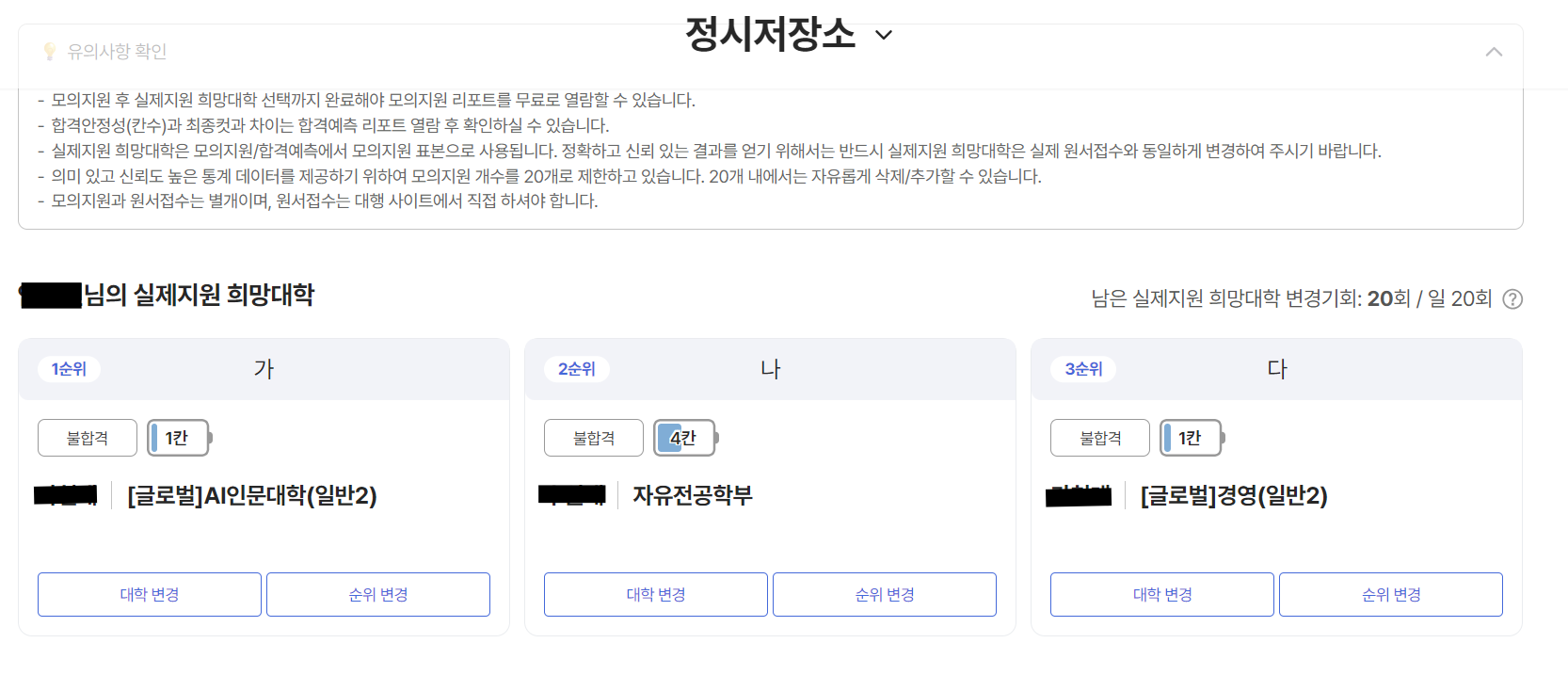 정시 원서 접수기간을 앞두고