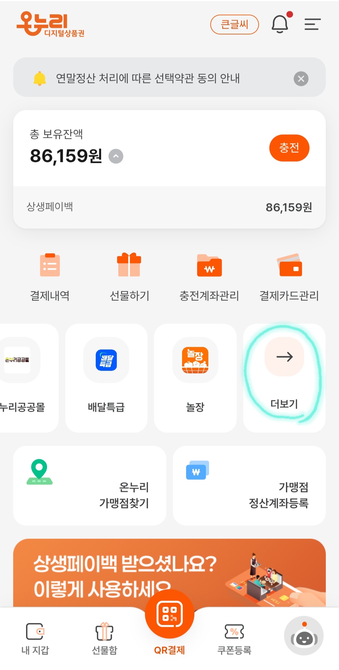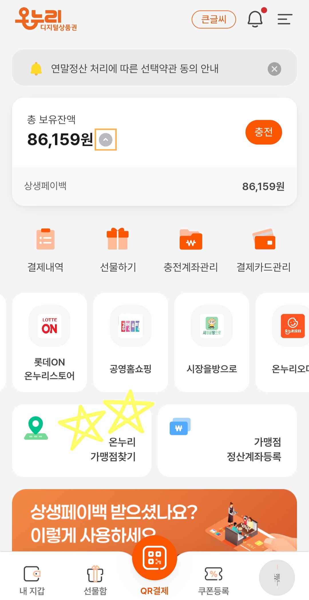 상생페이백 잔액을 사용할 수 있습니다.