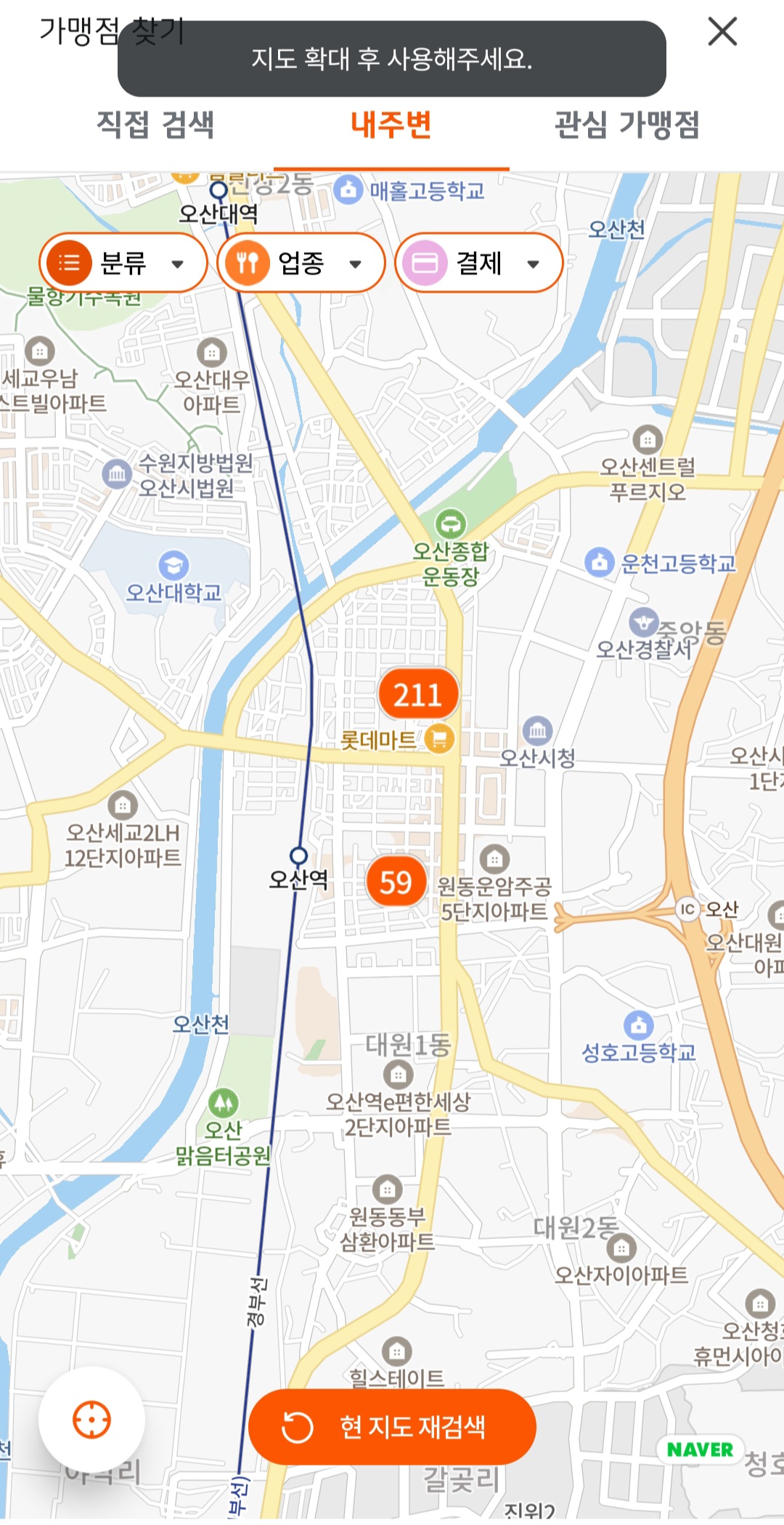 - 내 주변 사용 가능 매장 확인