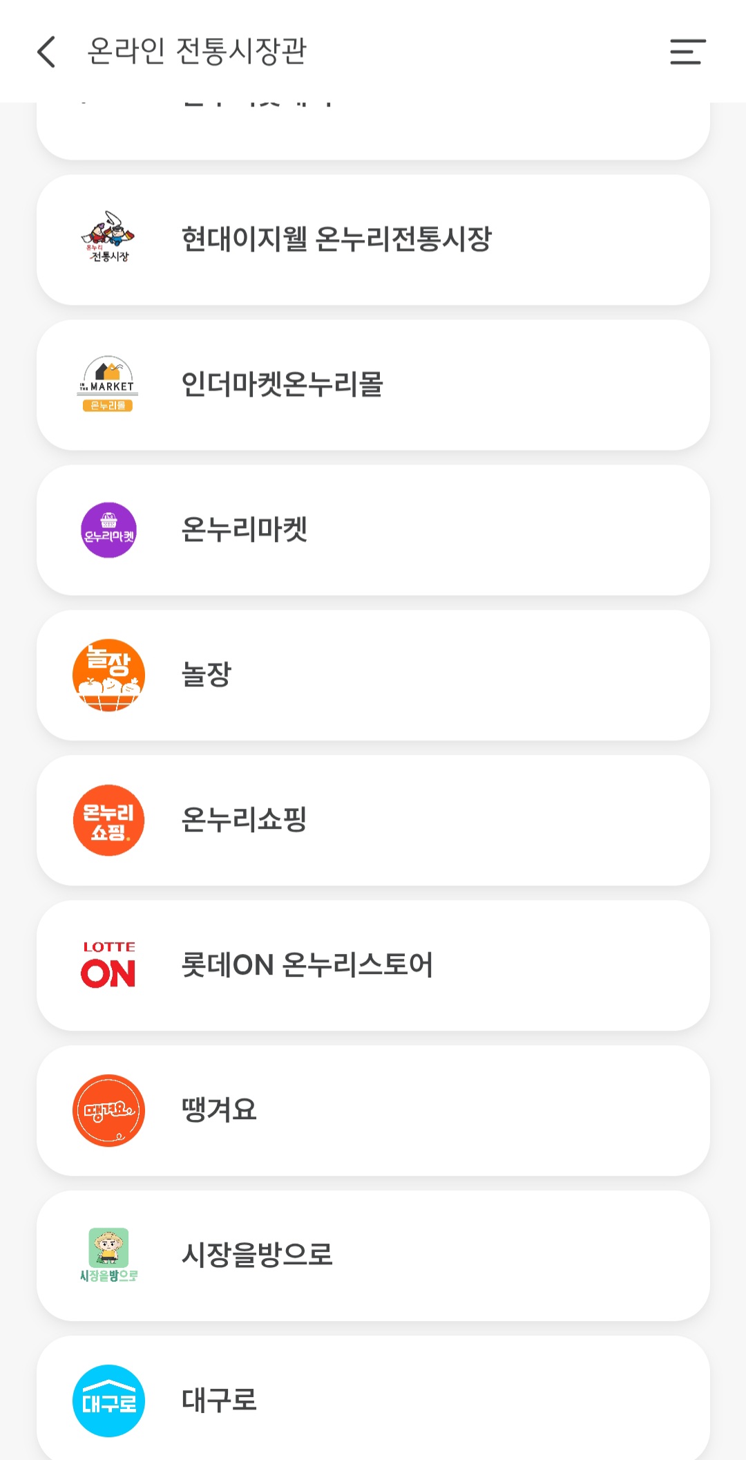 - [온누리 가맹점 찾기] 메뉴 선택