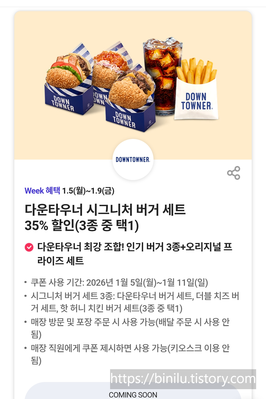 - 시그니처 버거 세트 35% 할인