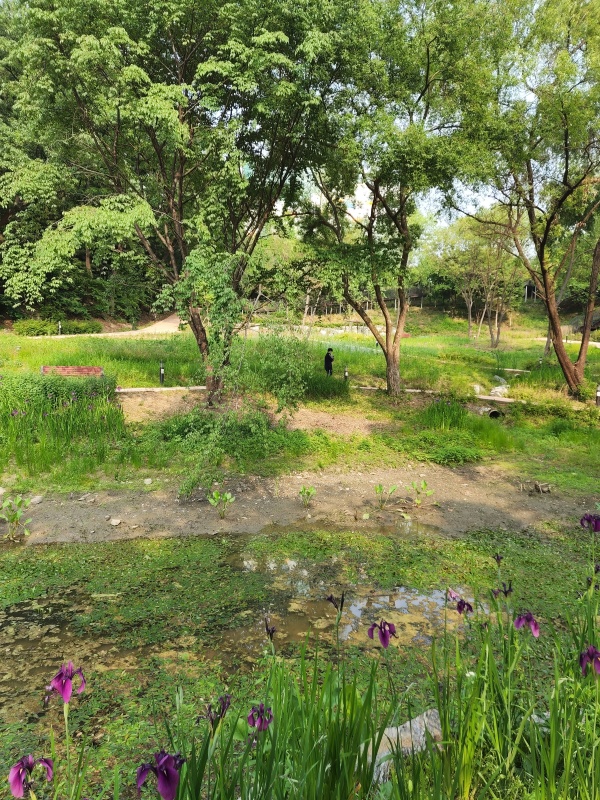 낮에 30도가 넘는다고 하더니 오후 늦게 지는 해도 따갑더라구요. 오는 길에 그네의자 발견하고 조금 쉬었다 왔네요.